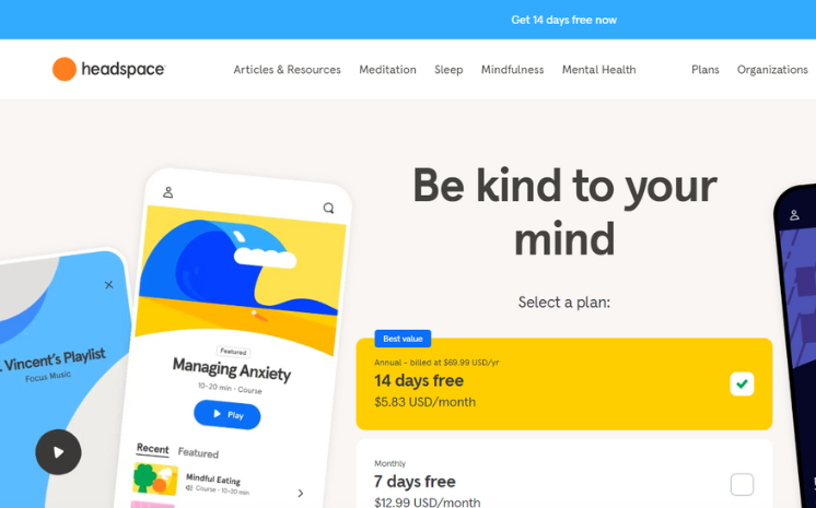 In turn, stress reduction is one of Headspace’s major objectives. The guided meditation sessions are aimed at helping users relax, have healthy stress management and develop a peaceful lifestyle.
